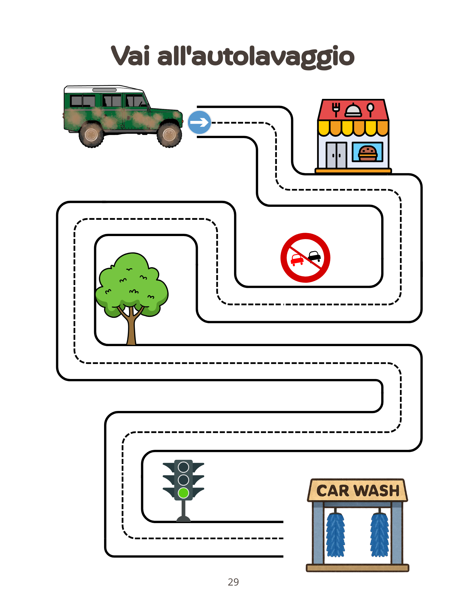 Questo divertente libro di attività sulle auto per bambini è pensato per aiutare i più piccoli a imparare lettere, numeri e abilità di base in modo semplice e coinvolgente.